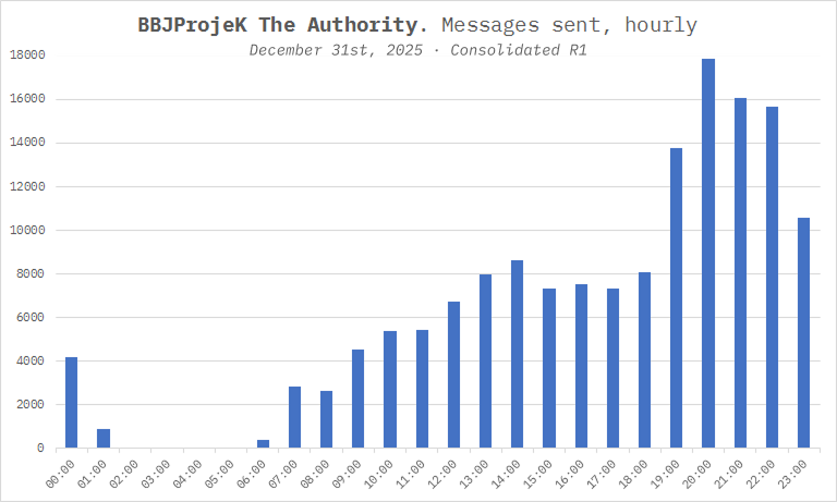 Messages sent by hour. Specified in UTC+01:00: