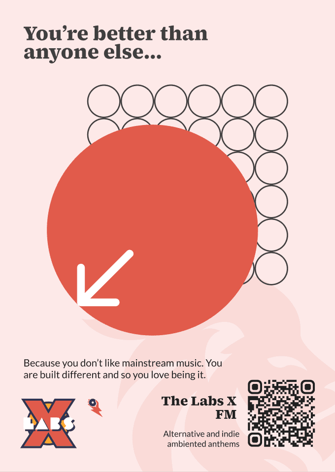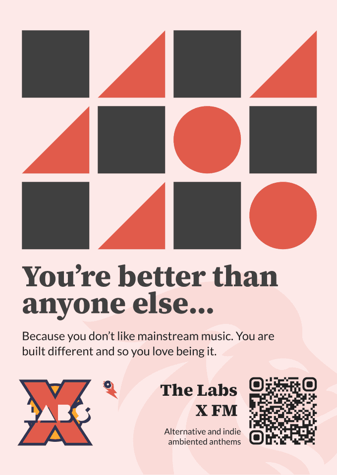 "We don't fit in anywhere. We're better than anyone else. Listen to The Labs X FM"